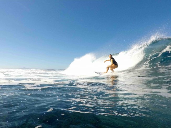 C’est vrai que j’ai progressé énormément ces dernières années alors que, hors compétition, je surfe nettement moins que les autres filles. Mais il n’y a pas de recette miracle. Le surf n’a pas de mode d’emploi et les méthodes d’entrainement restent taboues pour beaucoup.