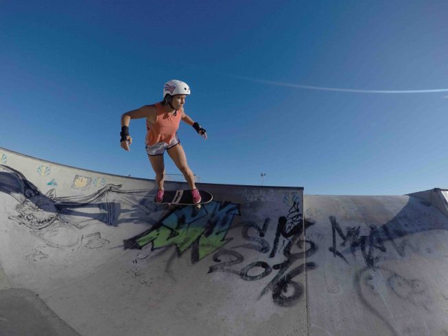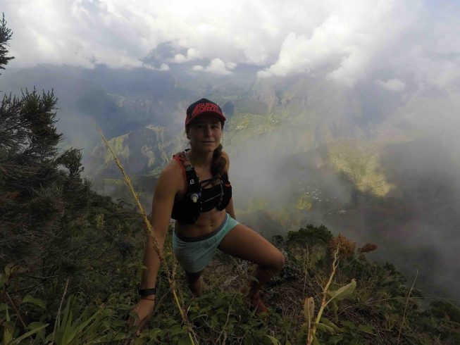 A côté, je travaille aussi l’endurance. Je suis une athlète qui a tendance à prendre du poids facilement et l’endurance fait partie de mon entrainement. Je mixe aussi avec du VTT, la Réunion est un terrain de jeu de fou pour le vélo. Mais également avec du skate pour travailler les changements d’appui. Pied avant, pied arrière, gestion des bras, travail du corps dans l’espace. Sans compter la natation, bien sûr.