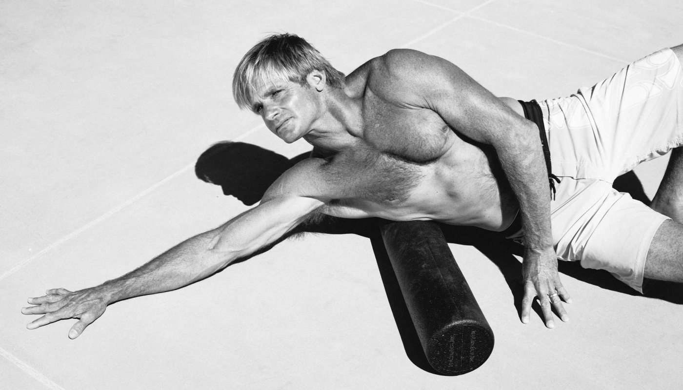 Laird Hamilton utilise un rouleau de massage