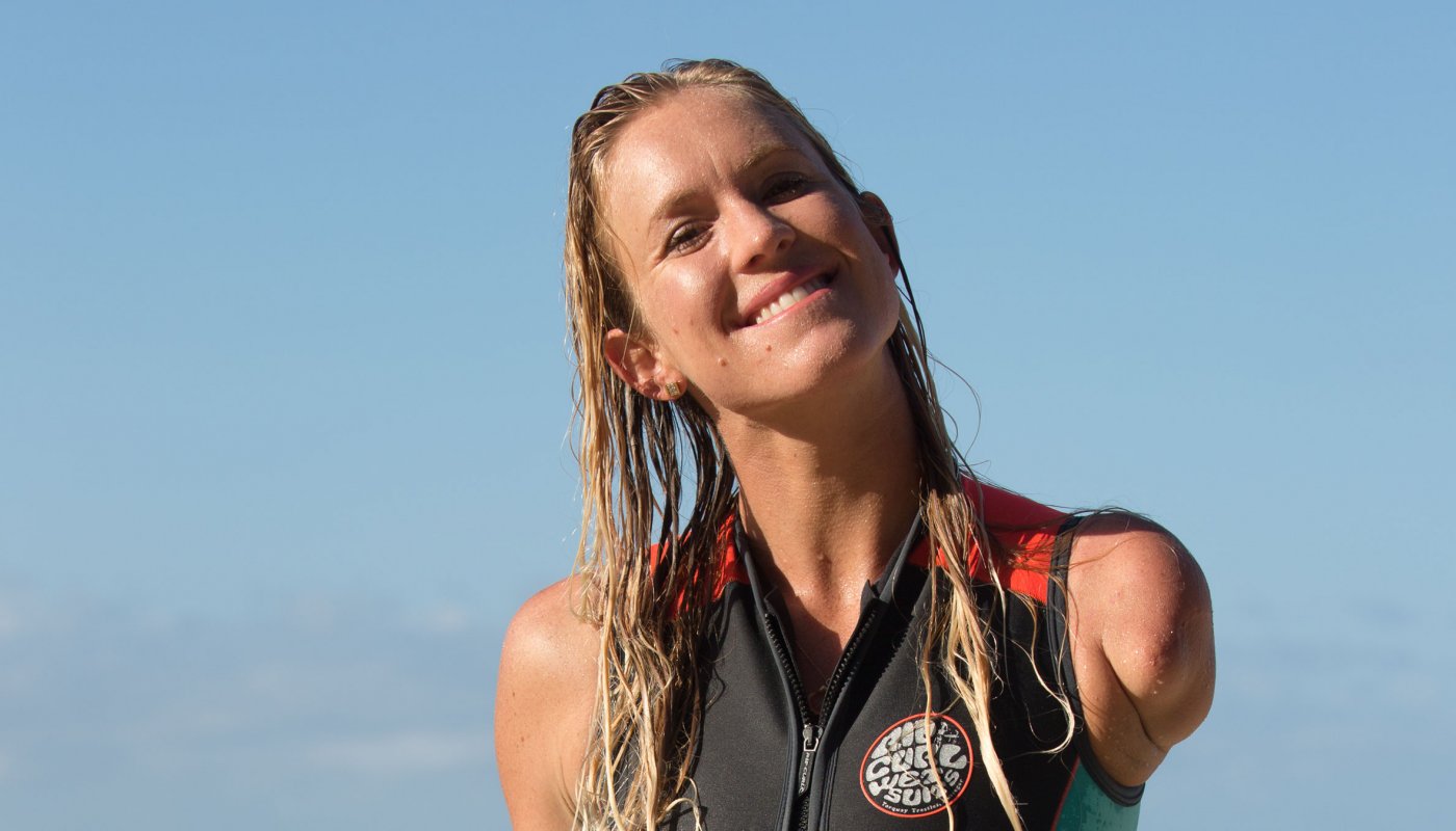A 13 ans, la surfeuse américaine se faisait arracher le bras gauche par un requin. Un “accident de parcours” selon elle, qui ne l’a pas fait dévier d’un iota. Surfer un Jaws de 15 mètres ou faire un air reverse, tout devient possible pour celle que rien n’a pu empêcher de devenir pro. En attendant la sortie du documentaire qui lui est consacré, “Bethany Hamilton : Unstoppable”, prévue cette année en France, retour sur un destin hors normes. Le choix des mots est essentiel quand on parle de Bethany Hamilton. En 2003, son histoire fait le tour du monde : elle a 13 ans et un requin-tigre vient de changer le cours de sa vie en lui prenant le bras gauche, alors qu’elle surfait sur la côte nord de Kauai, à Hawaï. “La fille mutilée par le requin”, “l’athlète handicapée” : Bethany Hamilton, 29 ans aujourd’hui, ne s’est jamais reconnue dans ces catégories. “À l’époque, j’étais tellement jeune, tellement résiliente… Je fonçais dans ce qui arrivait tête baissée comme un bélier. Perdre un bras n’a été pour moi qu’un accident de parcours, dit-elle. Un simple obstacle à contourner.” La gamine casse-cou était déterminée à devenir surfeuse professionnelle : mission accomplie. Ce qui ne signifie pas ce que cela ait été facile. Ce jour de 2003, Bethany Hamilton a perdu 60% de son sang. Moins d’un mois plus tard, les points de suture à peine retirés, elle retournait dans l’eau pour réapprendre à surfer. Son père avait installé une poignée au rail de sa planche pour qu’elle puisse faire le canard et passer sous les vagues, et elle trouva le moyen de se propulser en battant des pied pour compenser le fait de ne ramer que d’un seul bras. Au bout de deux mois, elle participait déjà à des compétitions… En 2005, elle remportait une épreuve nationale et, en 2007, elle passait professionnelle. Bethany Hamilton a été pas mal occupée ces…