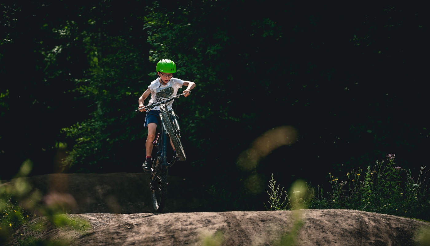 En revanche, un bon moyen d’obtenir un peu d’amortissement de manière efficace, est d’avoir recours à de gros pneus, de 2.0 ou 2.25 sur les vélos de moins de 20″, et de 2.4, voire 2.6 ou 2.8 sur les 20 pouces et plus. On obtient du grip, un comportement fun et une petite dose de confort qui, pour le coup, colle vraiment bien à un jeune public. Attention toutefois à ne pas trop gonfler ! Vous pouvez descendre à 0,5 bar sur les plus petits vélos et autour de 0,7 sur les plus grands avec des gros pneus. Dans tous les cas, pour les enfants, mieux vaut trop peu de pression que trop.